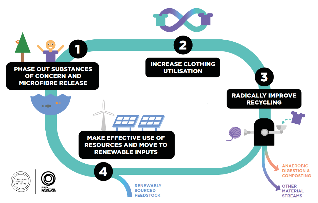 ● Улучшить сеть переработки текстильных отходов и стимулировать брендовые компании к увеличению доли использования переработанного волокна.