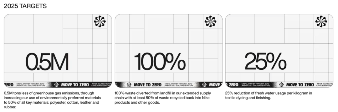 Nike не только поставила цель по нулевым выбросам углерода к 2050 году, но и досрочно достигла своей цели на 2025 год, которая заключается в сокращении выбросов углекислого газа на 500 000 тонн за счет использования не менее 50% EPM во всех ключевых материалах (полиэстер, хлопок, кожа и каучук). Такие меры, как увеличение доли переработанного полиэстера в обувной продукции и оптимизация использования низкоуглеродистых кожаных материалов, являются ключом к прогрессу. Отчет Nike о последствиях 2023 финансового года показывает, что доля переработанного полиэфирного волокна, используемого в обуви и одежде Nike, увеличилась на 11% по сравнению с 2022 финансовым годом; ее дочерняя компания Converse также расширяет использование переработанного полиэфирного волокна и заменяет материалы из первичного полиэстера на переработанный полиэстер, насколько это возможно, в каждом стиле обуви. Использование бренда переработанного полиэфирного волокна увеличилось на 91% по сравнению с предыдущим годом.