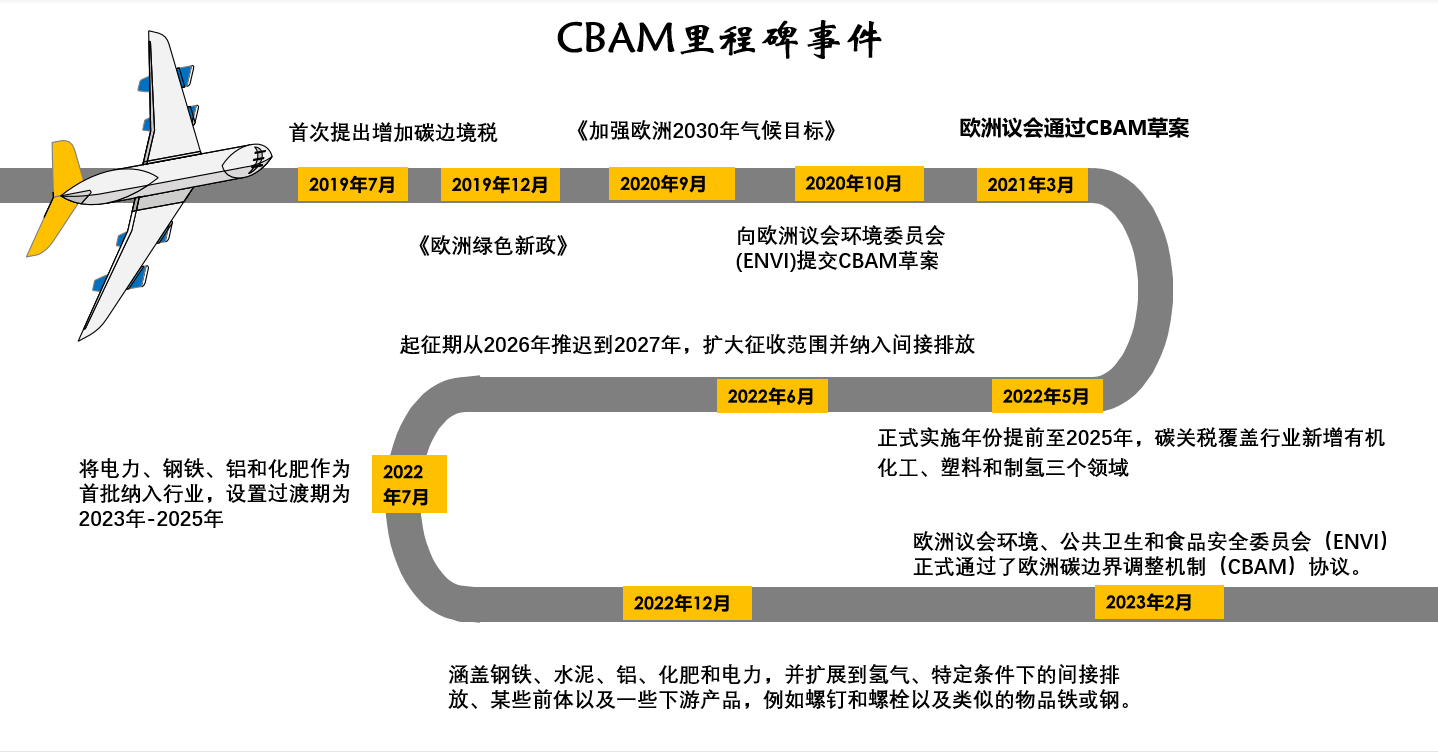 Примерно в 14:9. 7 февраля по пекинскому времени пересмотренная система торговли выбросами ЕС (ETS) и механизм корректировки углеродных границ (CBAM) были проголосованы за, и ожидается, что законопроект будет официально принят после полного голосования Европейского парламента во втором квартале 2020 года. 00. В октябре 2023 года вступил в силу европейский «углеродный тариф» на переходном этапе.